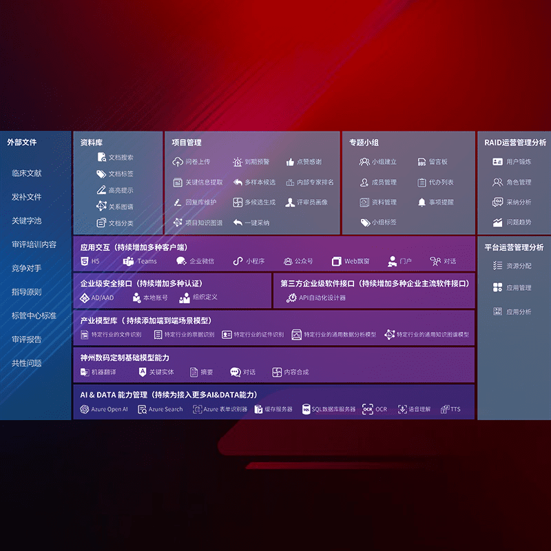 医疗器械产品上市前,,,,要熟悉严格与繁复评审标准,,,,整理分析监管机构指导文件中的海量信息。。。。企业急需一个智能化解决方案,,,提升知识管理效率,,,提高评审通过率,,,,以提升其市场竞争力。。。
